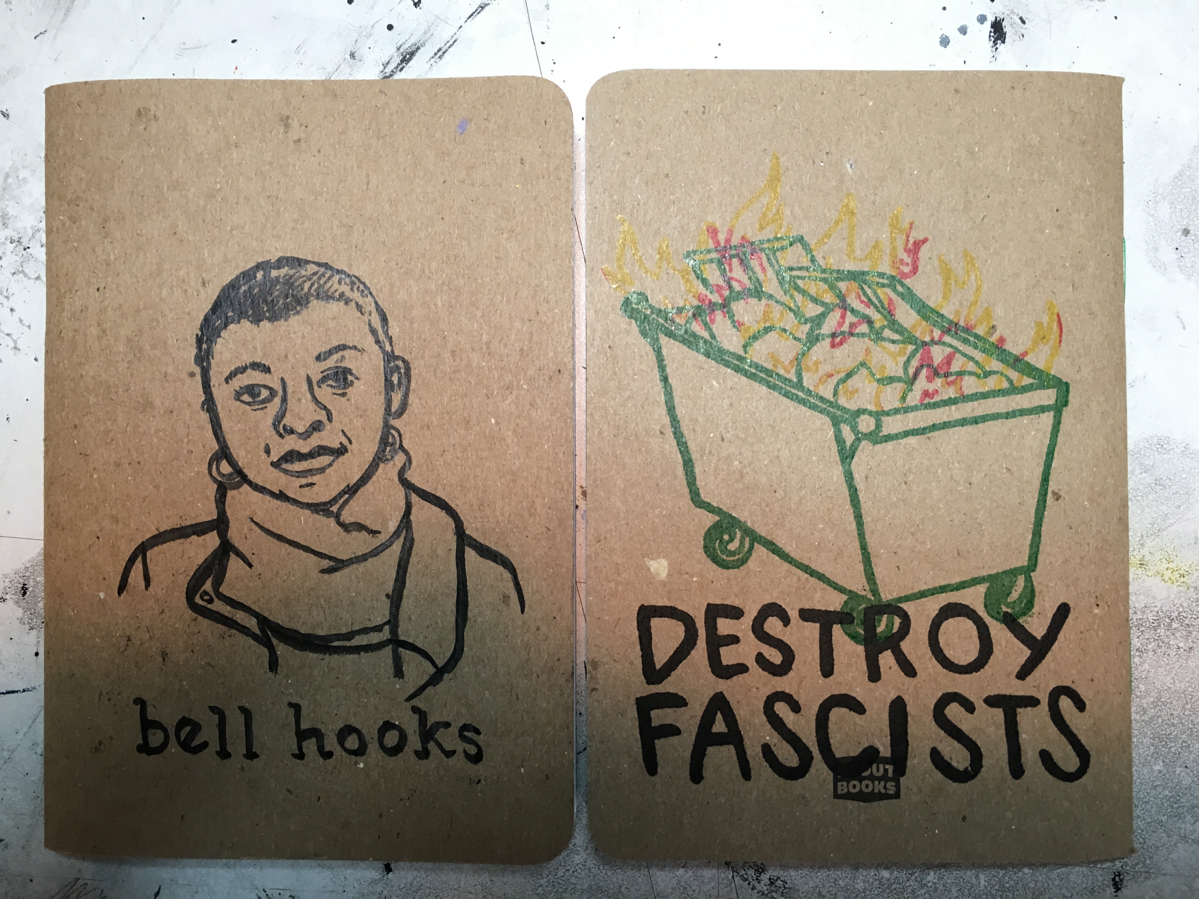 3.5 x 5 in / 32 blank page notebook featuring original ink drawing of bell hooks. Destroy Fascists print on reverse.