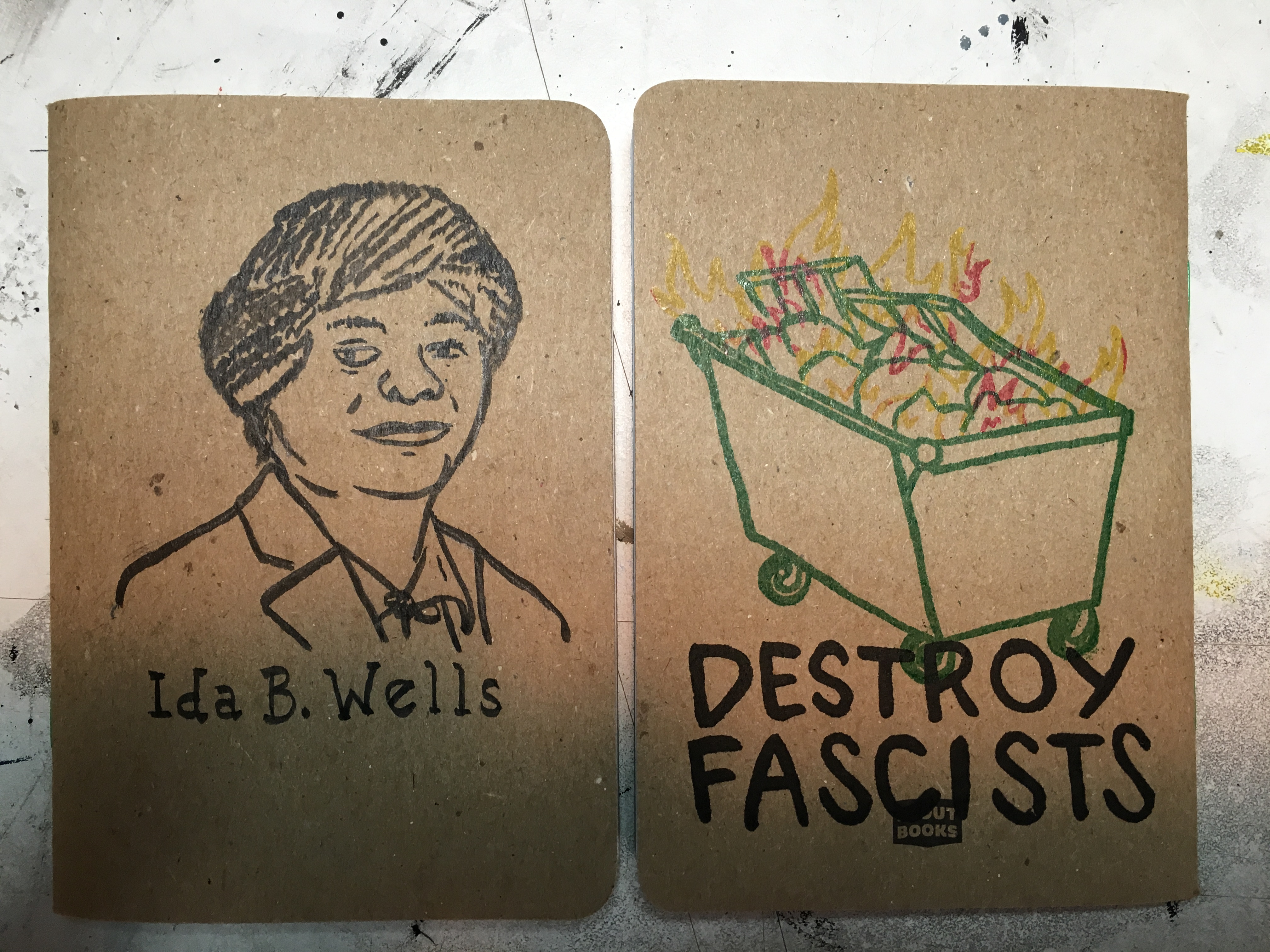 3.5 x 5 in / 32 blank page notebook featuring original ink drawing of Ida B. Wells. Destroy Fascists print on reverse.